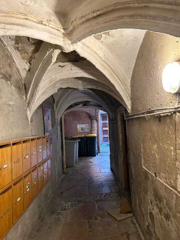 Lyon 5- Saint-Georges. Idéalement localisé au calme dans le quartier Saint-Georges, ce T2, rare à la vente, bénéficie de la proximité de la gare de Perrache et de tous les transports en commun (métro D Vieux-Lyon, bus), des commerces, des écoles et de toutes les commodités. Situé en duplex en dernier étage d'une copropriété Renaissance à taille humaine, bien entretenue avec de faibles charges (la façade a été ravalée il y a trois ans), il bénéficie d'une vue dégagée sur les toits de la capitale des Gaules et d'une luminosité sans égale. Au premier niveau, une grande pièce de vie de presque 35 m2 carrez permet d'aménager un espace cuisine et salle à manger et un coin salon. A coté, une salle d'eau avec WC complète le niveau. A l'étage, une spacieuse mezzanine permet d'établir un coin nuit séparé et agréable. L'appartement a été entièrement rénové. Profitez de la souplesse et de la réactivité de votre conseiller immobilier pour visiter rapidement. Copropriété de 23 lots (Pas de procédure en cours). Charges annuelles : 465 euros. Les informations sur les risques auxquels ce bien est exposé sont disponibles sur le site Géorisques : www. georisques. gouv. fr