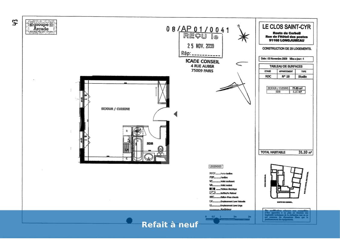 Location Studio - 31 m² - Longjumeau 91160