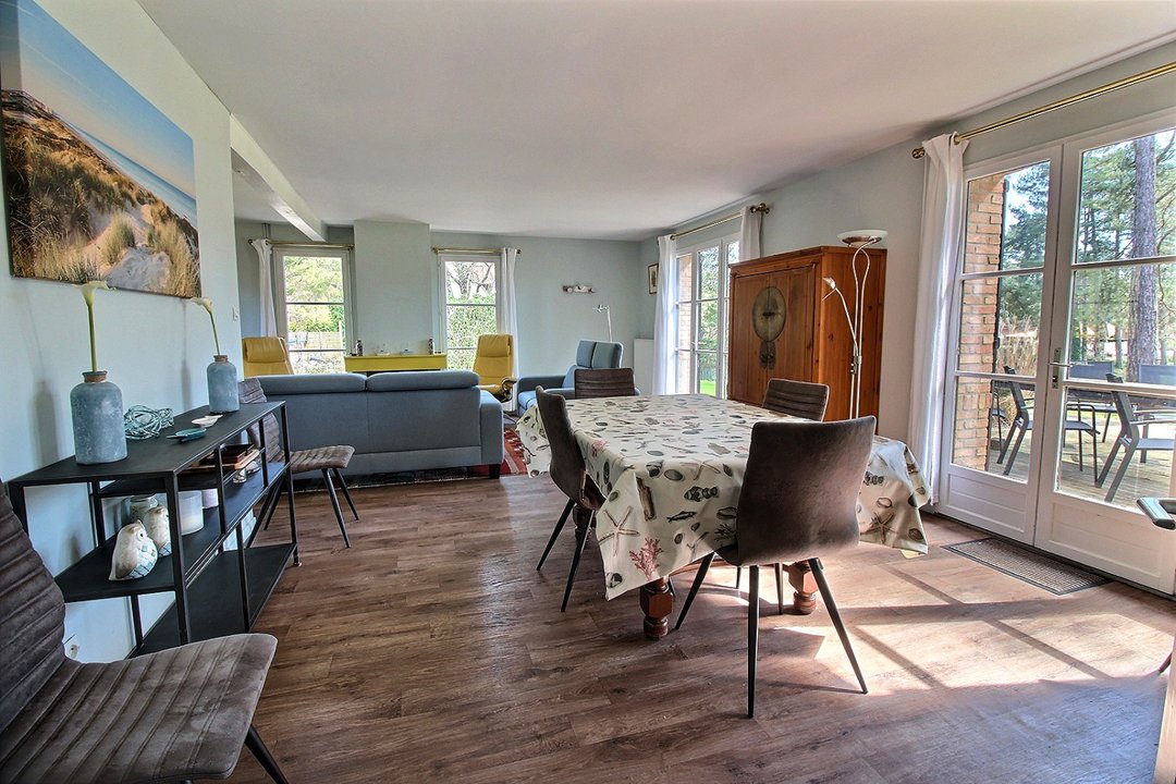 A proximité du sable fin, et du centre ville, maison avec piscine, vue sur le Golf, pour 8 à 10 personnes max, sur un secteur calme, offrant : Au rez de chaussé : Salon / salle à manger, cuisine équipée, et grande terrasse donnant sur le Golf. Une pièce de repos avec canapé convertible, salle d'eau et WC séparé, . A l'étage : 1 chambre avec lit double 180 (2x90), 1 chambre avec 2 lits simples en 80, 1 chambre avec lits superposés en 80, et une 4ème chambre avec lits jumeaux en 80. Une salle de bain, et 2 salles d'eau avec WC. Terrasse donnant sur le golf des Pins, et une piscine sur le côté de la maison ( 3,5x7,5 profondeur 1,60 m ). Piscine extérieur en fonctionnement uniquement Juillet-Août Jardin partiellement clôturé. Animaux NON acceptés. WIFI Une grande allée pour la voiture. Une laverie au sous sol. Garage pour les vélos. Proximité du centre équestre. Linge de maison non fourni, possibilité de kits de draps 100% biodégradables. Dégressivité pour toute semaine supplémentaire.