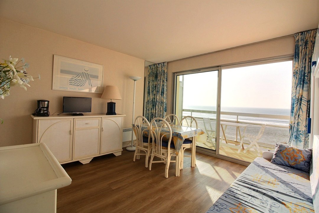 Studio cabine offrant une très belle vue sur la plage. Salon/séjour avec lit armoire en 135, et cuisine équipée. Balcon vue mer. Une cabine dans l'entrée avec 2 lits simple jumelé 140 ( 2x70 ). Salle de bains et WC séparé. Résidence Goélands avec ascenseur. Animaux de petite taille acceptés (supplément de 30 euros). ATTENTION : Travaux de façade 2026, nous contacter avant réservation. Linge de maison non fourni, possibilité de kits de draps 100% biodégradables. Dégressivité pour toute semaine supplémentaire. Agence SERGIC HARDELOT, service location.